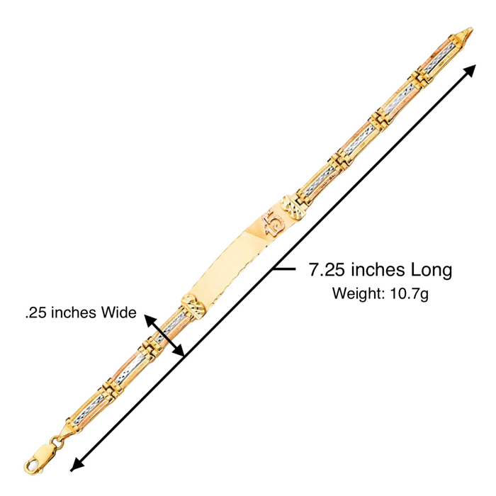 14k Gold Quinceañera ID Bracelet with Gold Name Overlay - LE-1013