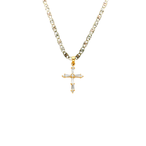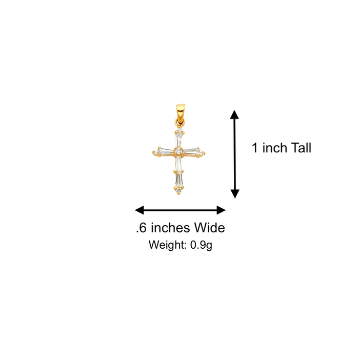 14k Gold Small Baguette Gemstone Cross Pendant with Solid Chain - LE-0538