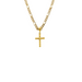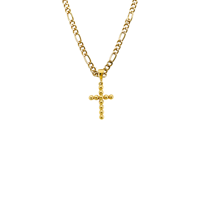 14k Gold Small All Yellow Beaded Design Cross Pendant with choice of Solid Figaro or Valentino Chain