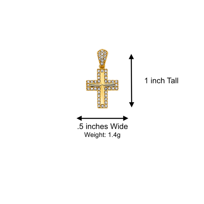 14k Gold Small Gemstone Cross Pendant with Solid Chain - LE-2609