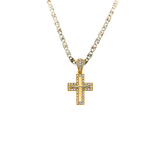 14k Gold Small Gemstone Cross Pendant with choice of Solid Figaro or Valentino Chain