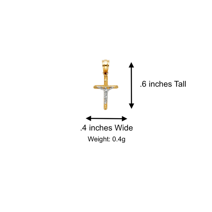 14k Gold Tiny Two Tone Jesus Cross Pendant with Solid Chain - LE-0048