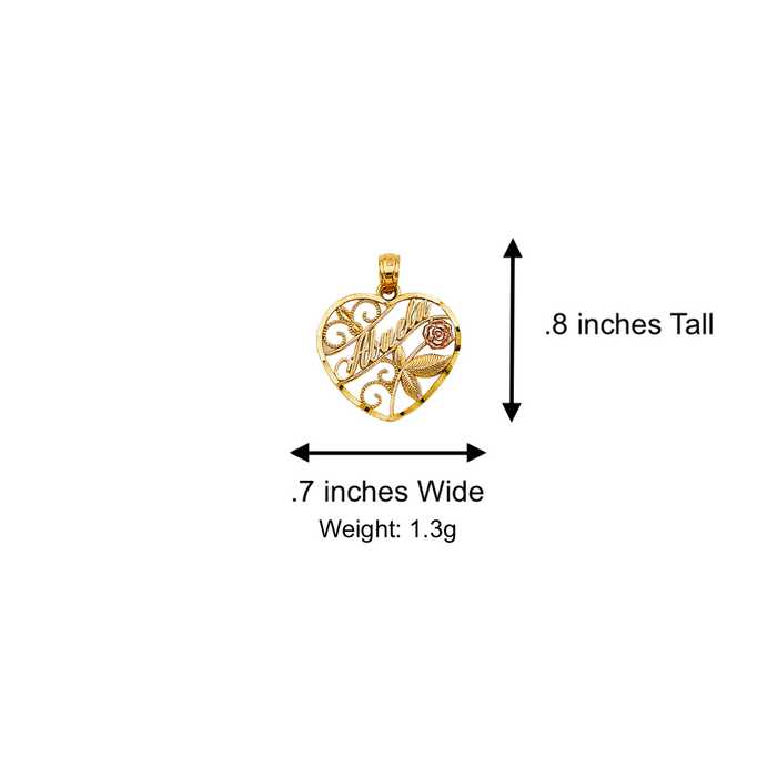 14k Gold Tri Tone Abuela Heart Pendant with Solid Chain - LE-2702