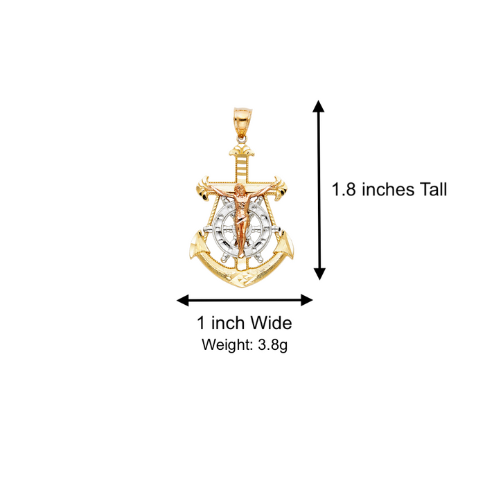 14k Gold Tri Tone Jesus Anchor Mariner Pendant with Solid Chain - LE-0114