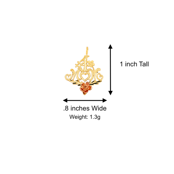 14k Gold Two Tone #1 Mom Heart Pendant with Solid Chain - LE-1832
