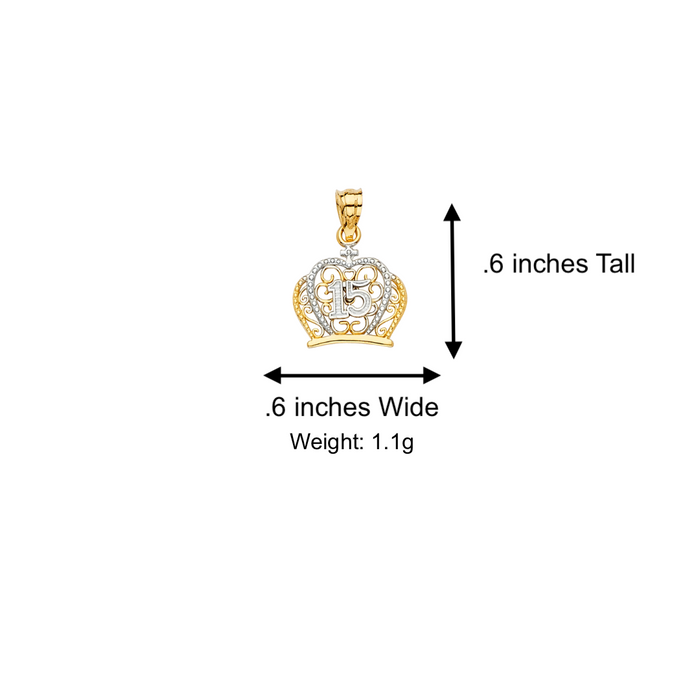 14k Gold Two Tone 15 Años Quinceañera Crown Pendant with Solid Chain - LE-2148