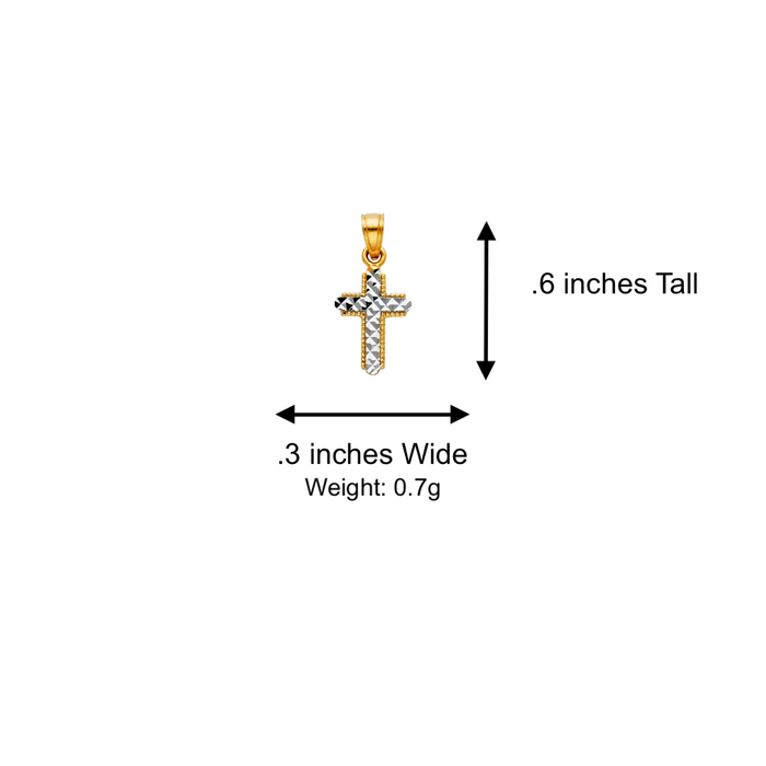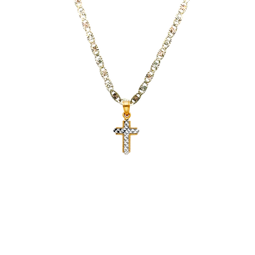 14k Gold Two Tone Small Cross Pendant with Solid Chain - LE-0133