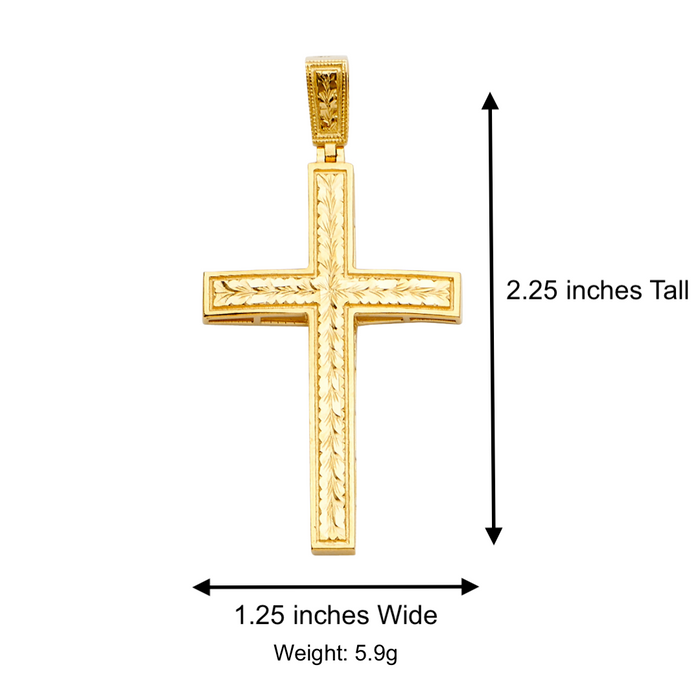14k Gold XLarge Diamond Cut Cross with Solid Figaro Chain - LE-2204