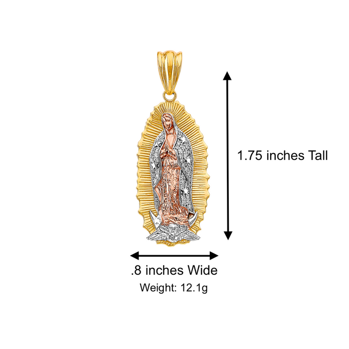 14k Large Virgin Mary Pendant with White Gemstone Cloak and Solid Figaro Chain