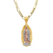 14k Gold Large Virgin Mary Pendant with White Gemstone Cloak and Solid Figaro Chain - LE-3182