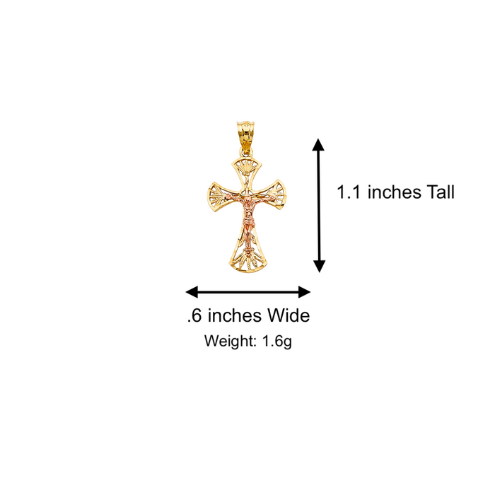 14k Rose Gold Jesus Cross Pendant with Solid Chain - LE-2709