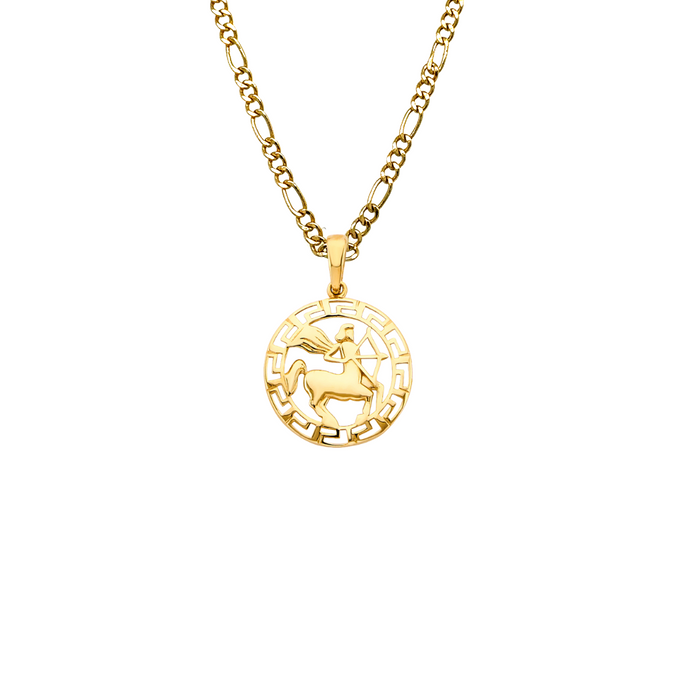 14k Sagittarius Zodiac Sign Gold Pendant and choice of Solid Figaro or Valentino Chain