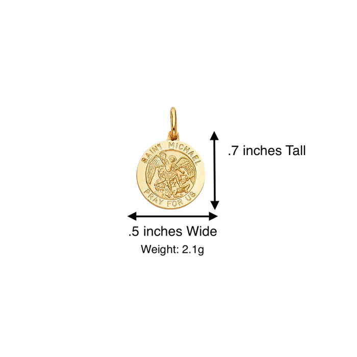 14k Saint Michael Pray For Us Gold Pendant with choice of Solid Figaro or Valentino Chain