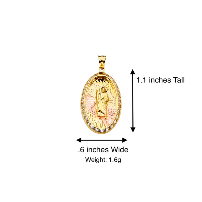 14k Gold San Judas Oval Gemstone Pendant with Solid Chain - LE-2250