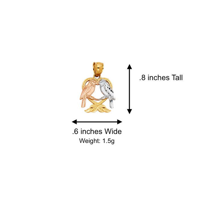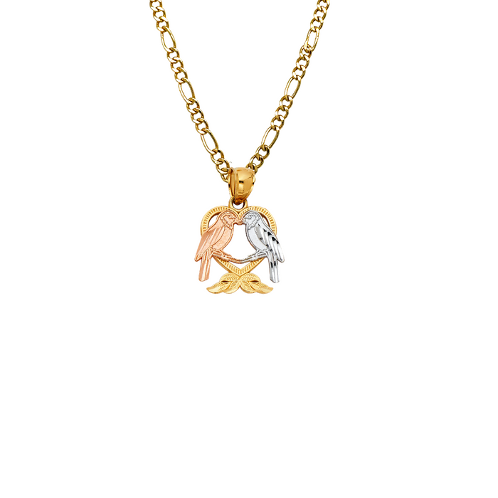 14k Tri Gold Love Birds Heart Pendant with Solid Chain - LE-1949