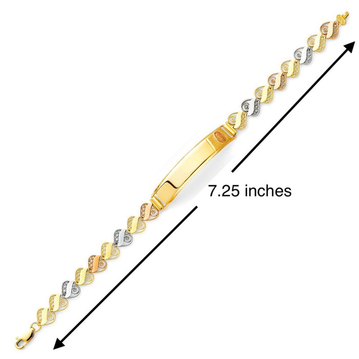 14k Tri Gold Women's ID Bracelet with Gold Name Overlay and Filigrano Heart Links
