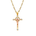 14k Two Tone Gold Gemstone Jesus Cross Pendant with choice of Solid Figaro