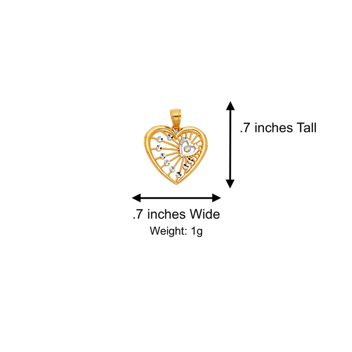 14k Two Tone Gold Heart Pendant with Solid Chain - LE-0427