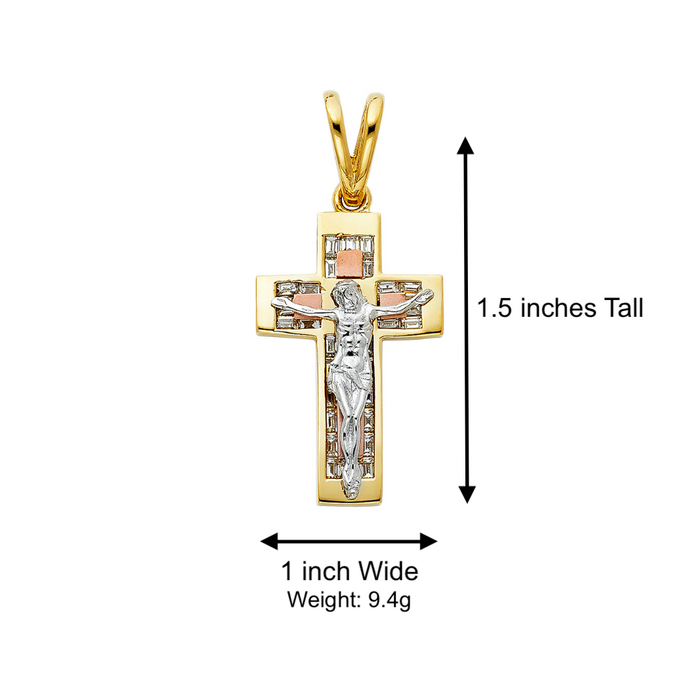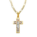 14k Two Tone Gold Gemstone Jesus Cross with Solid Figaro Chain
