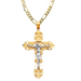 14k Two Tone Gold Ornate Jesus Cross with Solid Figaro Chain - LE-0974