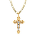 14k Two Tone Gold Ornate Jesus Cross with Solid Figaro Chain - LE-0975