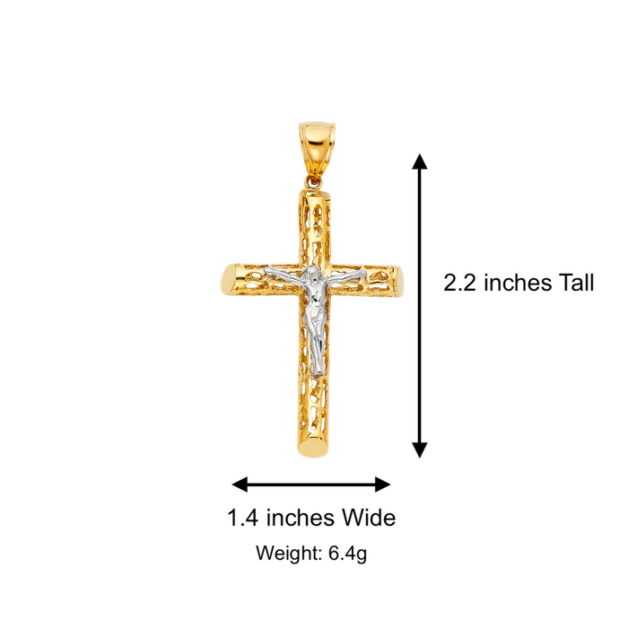 14k Two Tone Gold Turkish Jesus Cross with Solid Figaro Chain - LE-1215