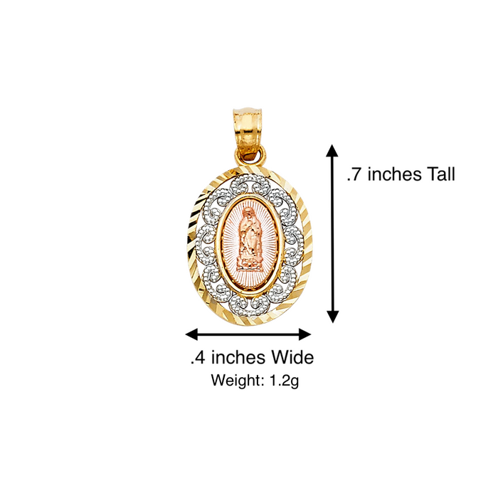 14k Virgin Mary Oval Diamond Cut Pendant with Solid Chain - LE-PT381