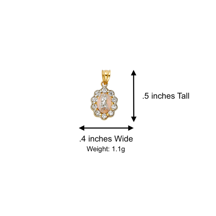 14k Virgin Mary Pendant with Gemstone Wreath Bezel and Solid Chain - LE-391