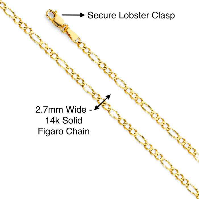 - Guaranteed 14 Karat Solid Gold Pendant and Solid Figaro Necklace