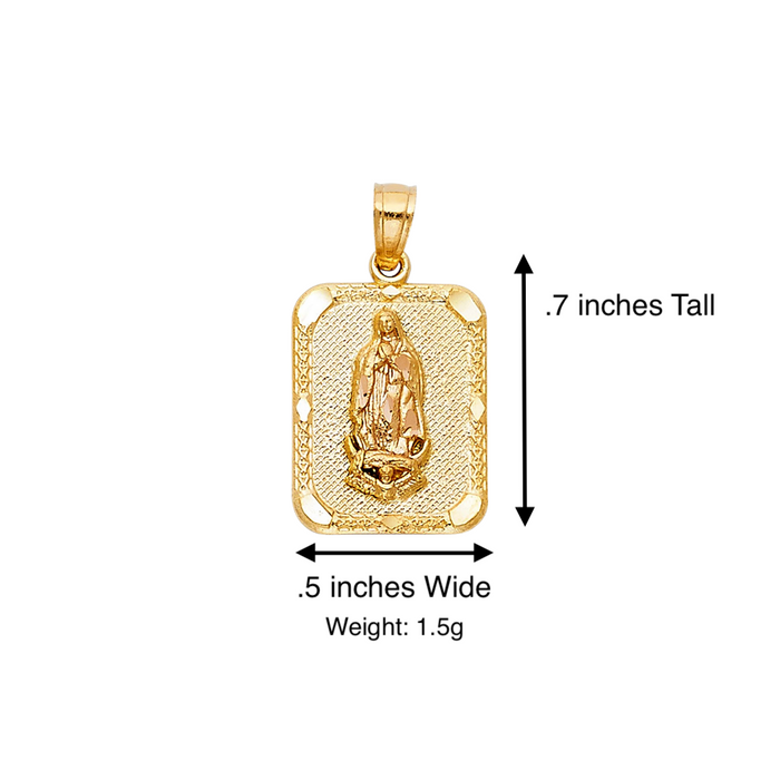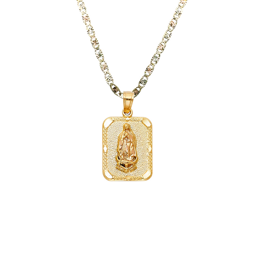 14k Virgin Mary Rectangle Textured Pendant with Solid Chain - LE-PT1122