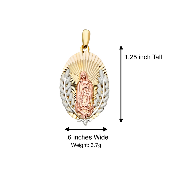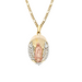 14k Virgin Mary TriColor Oval Pendant with Solid Figaro Chain