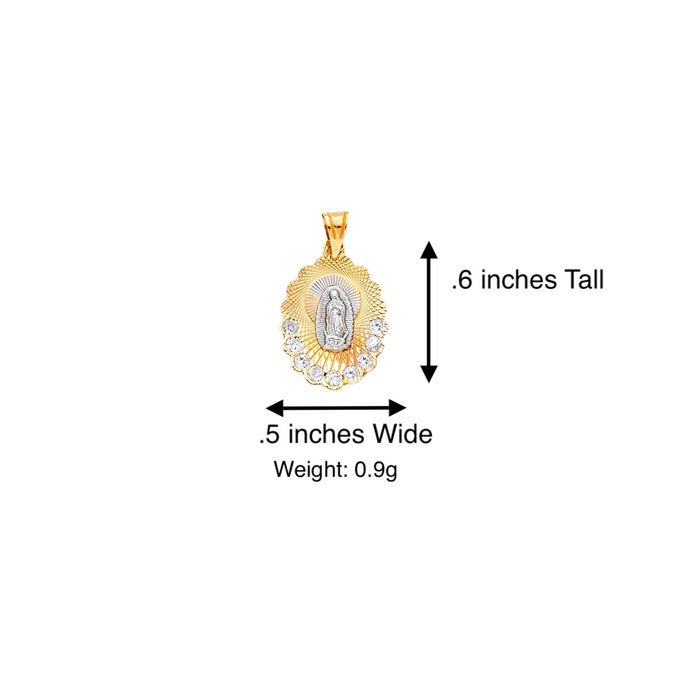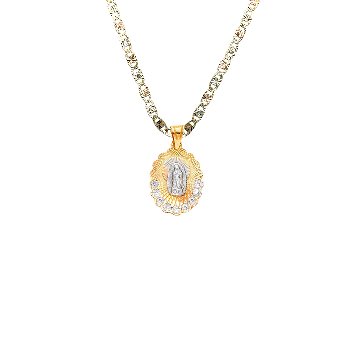 14k Virgin Mary TriGold Pendant with Gemstones and Solid Chain - LE-1298