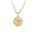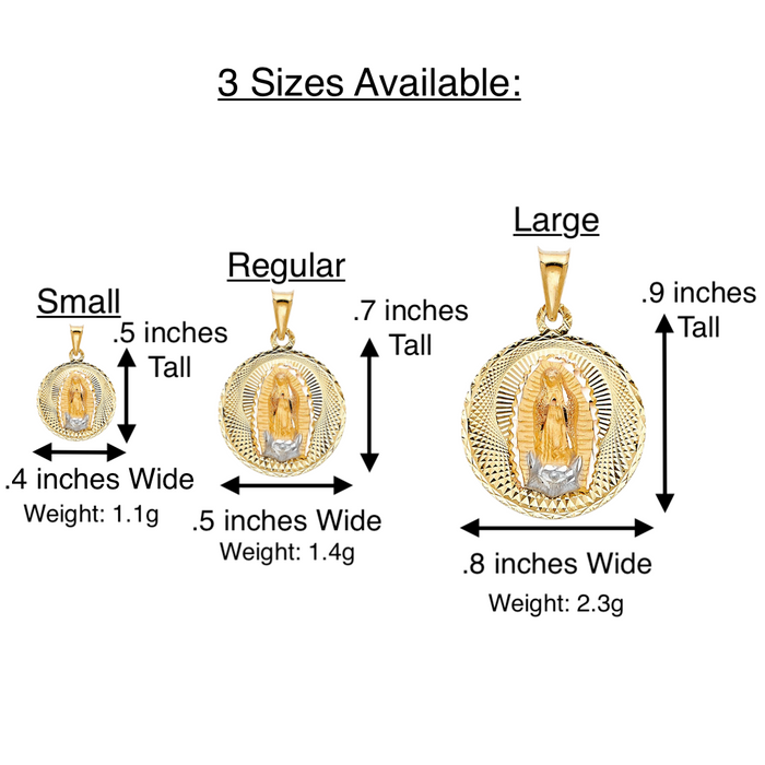 14k All Yellow Gold Virgin Mary Round Pendant with choice of Solid Figaro or Valentino Chain