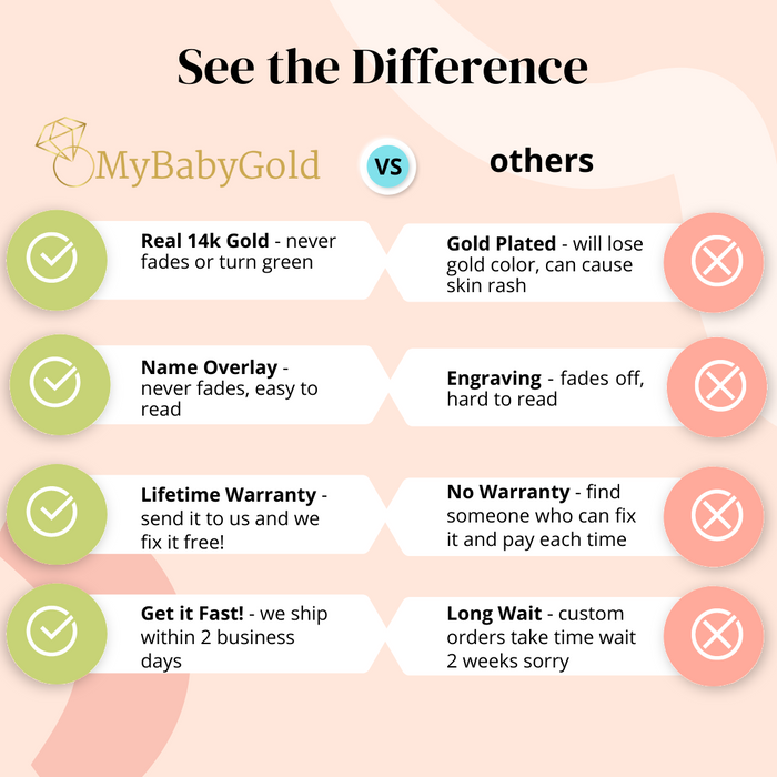 We believe in the power of personalization. Your chosen name is expertly cut from solid 14k Gold and elegantly overlaid on the bracelet, creating a one-of-a-kind accessory. Additionally, you have the option to engrave a significant date on the back of the nameplate, transforming this bracelet into a cherished keepsake.