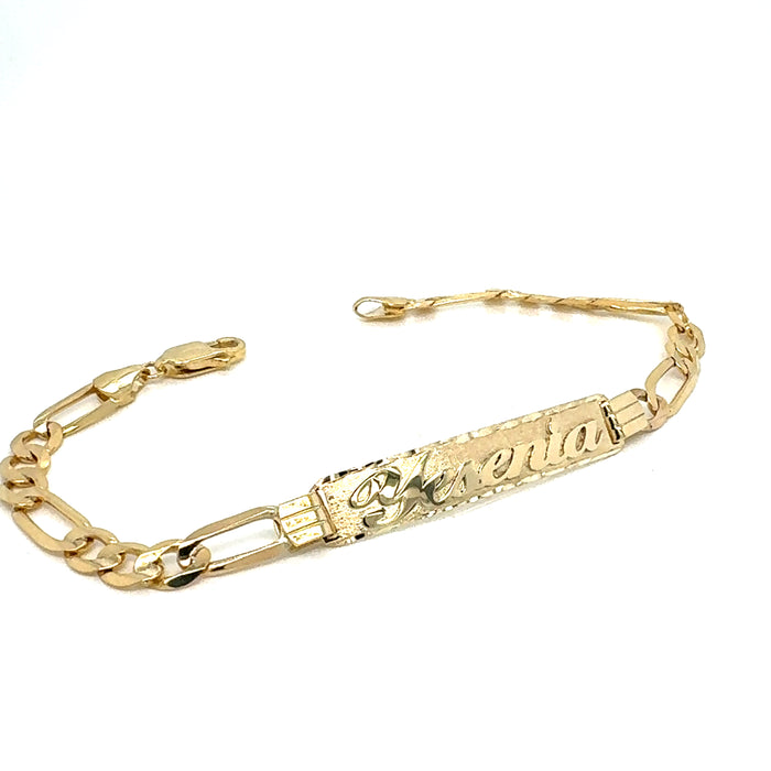 14k Yellow Gold Women's Figaro Link ID Bracelet with Gold Name Overlay