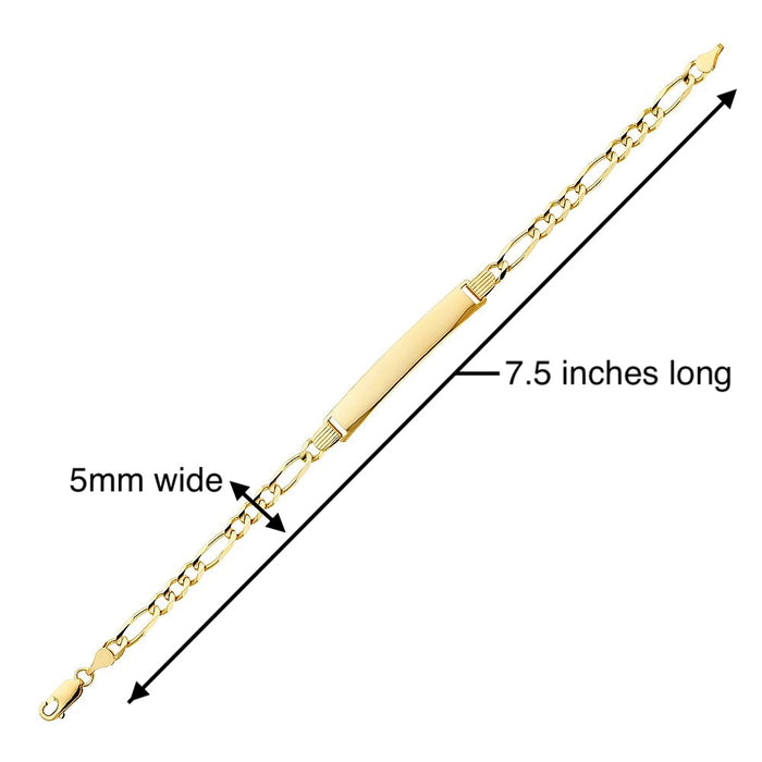 Cherish the Moment with our 14k Yellow Gold Women's Figaro Link ID Bracelet: Crafted in the timeless Solid Figaro Link style, this bracelet is a symbol of Elegance and Love.