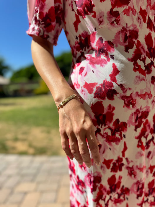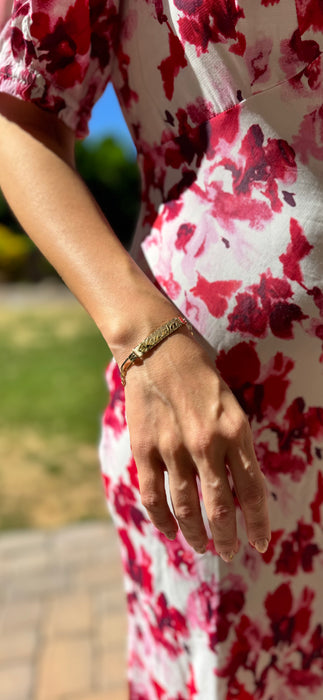 We believe in the power of personalization. Your chosen name is expertly cut from solid 14k Gold and elegantly overlaid on the bracelet, creating a one-of-a-kind accessory. Additionally, you have the option to engrave a significant date on the back of the nameplate, transforming this bracelet into a cherished keepsake.